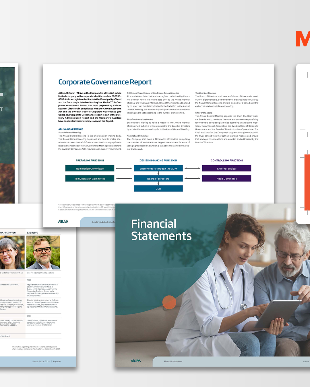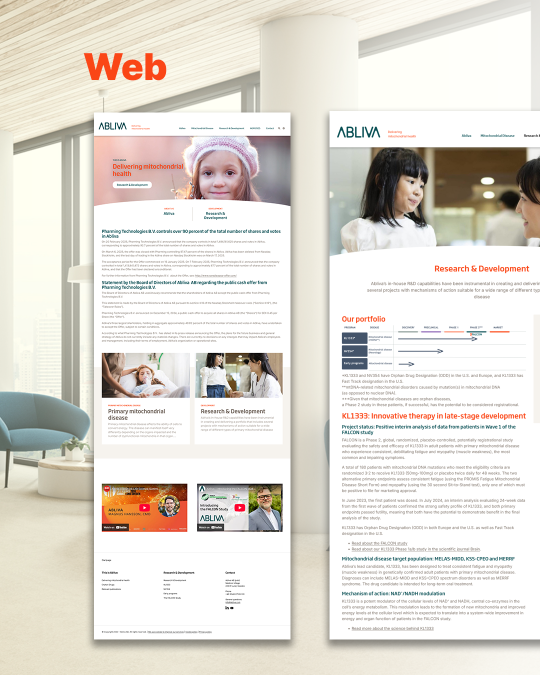 I detta projekt har Odd One Out tagit fram en helt ny grafisk profil till Abliva. I detta arbete ingick att producera design av ny webbplats samt att hjälpa till med strukturtänk och integration av IR-nyheter som hämtas in från Modular Finance, MFN. Anpassning och programmering av WordPress och integration mot MFN har Follow me Darling hjälpt oss med.